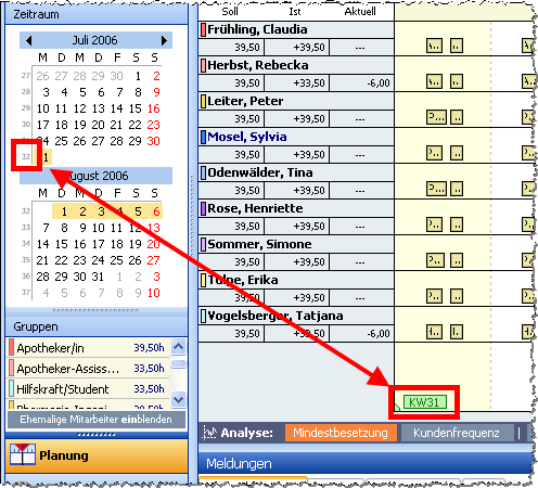 Die Berechnung der Kalenderwoche unterscheidet sich zwischen den USA und Deutschland. In Deutschland ist Montag der Wochenbeginn, in den USA Sonntag. Der Personal-Manager greift im Kalender für die Berechnung der Kalenderwoche auf die Einstellungen der Windows-Systemsteuerung zurück. Wenn dort nun ein anderes Land als „Deutschland“ eingetragen ist, kann es zu diesem Effekt kommen.
